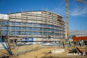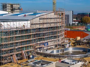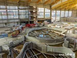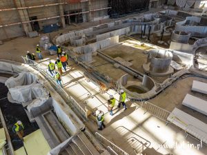 Aktualnie trwają intensywne prace wewnątrz budynku Dolnośląskiego Centrum Rehabilitacji i Rekreacji, choć i na zewnątrz sporo się dzieje. Wraz z prezydentem nasza fotoreporterka obejrzała dziś i uchwyciła na zdjęciach m.in. główną halę basenową, która już teraz robi wrażenie, a także miejsce, gdzie będzie się znajdowała strefa rehabilitacji i leczenia bólu oraz – co ciekawe – to co znajduje się pod nieckami basenowymi. To właśnie pod halą basenową znalazły się na przykład ogromne filtry do wody i wszystkie instalacje, można tu też zobaczyć od spodu ogromne donice na roślinność.