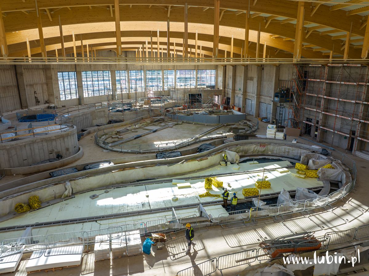 – Na tym etapie, czyli stopniowego zagospodarowania wszystkich niecek, jeszcze tu nie byłem. Jestem pod wrażeniem. Rzeczywiście to imponująca inwestycja, co zresztą powtarzam wszystkim mieszkańcom – nie tylko Lubina. Tak naprawdę w promieniu 60-70 kilometrów wszyscy czekają na otwarcie – mówi prezydent Lubina Robert Raczyński. – Zaangażowanie firmy jest poważne, mimo różnych problemów związanych z zimą, która tu wszystkich zmroziła. Ten mróz był przecież nie tylko na zewnątrz, ale też w tej hali. Trochę to opóźniło roboty, natomiast są one imponujące – dodaje.