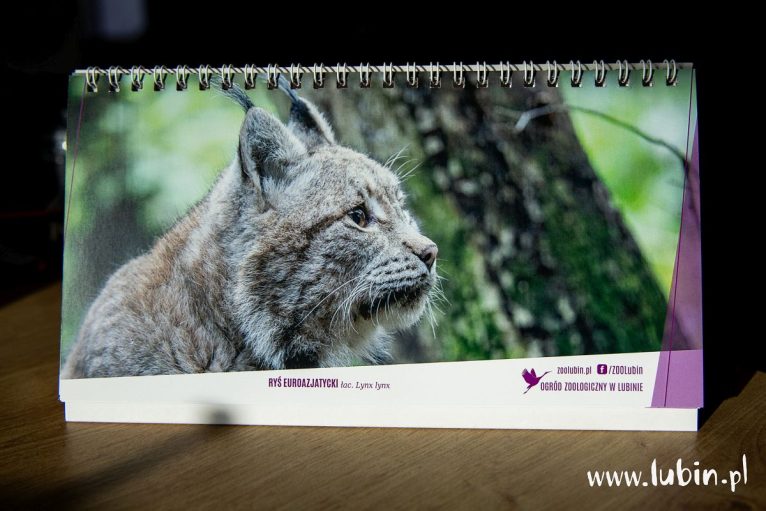 A tym razem na kartach kalendarza umieszczono miks: różne zwierzęta z tutejszego Ogrodu Zoologicznego oraz jedno, które wkrótce tu zamieszka, a dokładnie w wakacje przyszłego roku, czyli rysia.