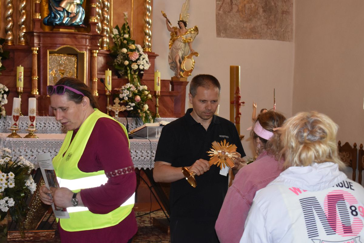 W Parszowicach ksiądz Grzegorz Ropiak przedstawił najnowszą historię kościoła związaną z organizowaną tam corocznie uroczystością rocznicy męczeńskiej śmierci błogosławionego ks. Jerzego Popiełuszki, który w parszowickim kościele w 1972 r. odprawił jedną ze swoich pierwszych mszy.