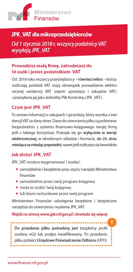 Aplikacja e-mikrofirma, a także formularz JPK_VAT i aplikacja KLIENT JPK 2.0 oraz informacje, jak utworzyć i wysłać JPK_VAT, są dostępne na stronie jpk.mf.gov.pl.