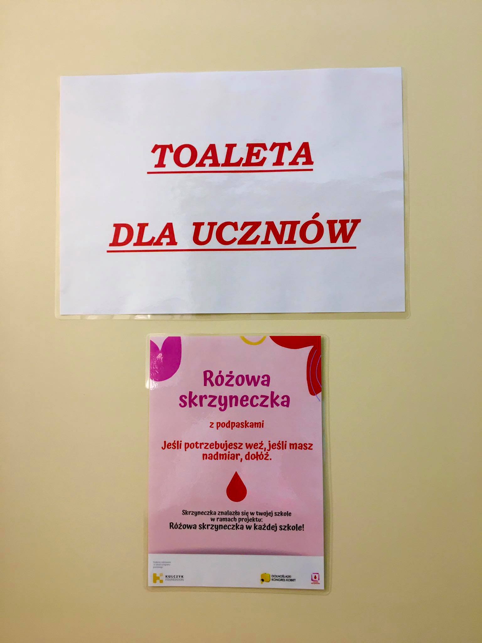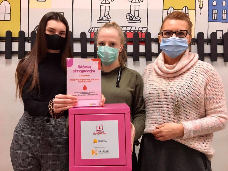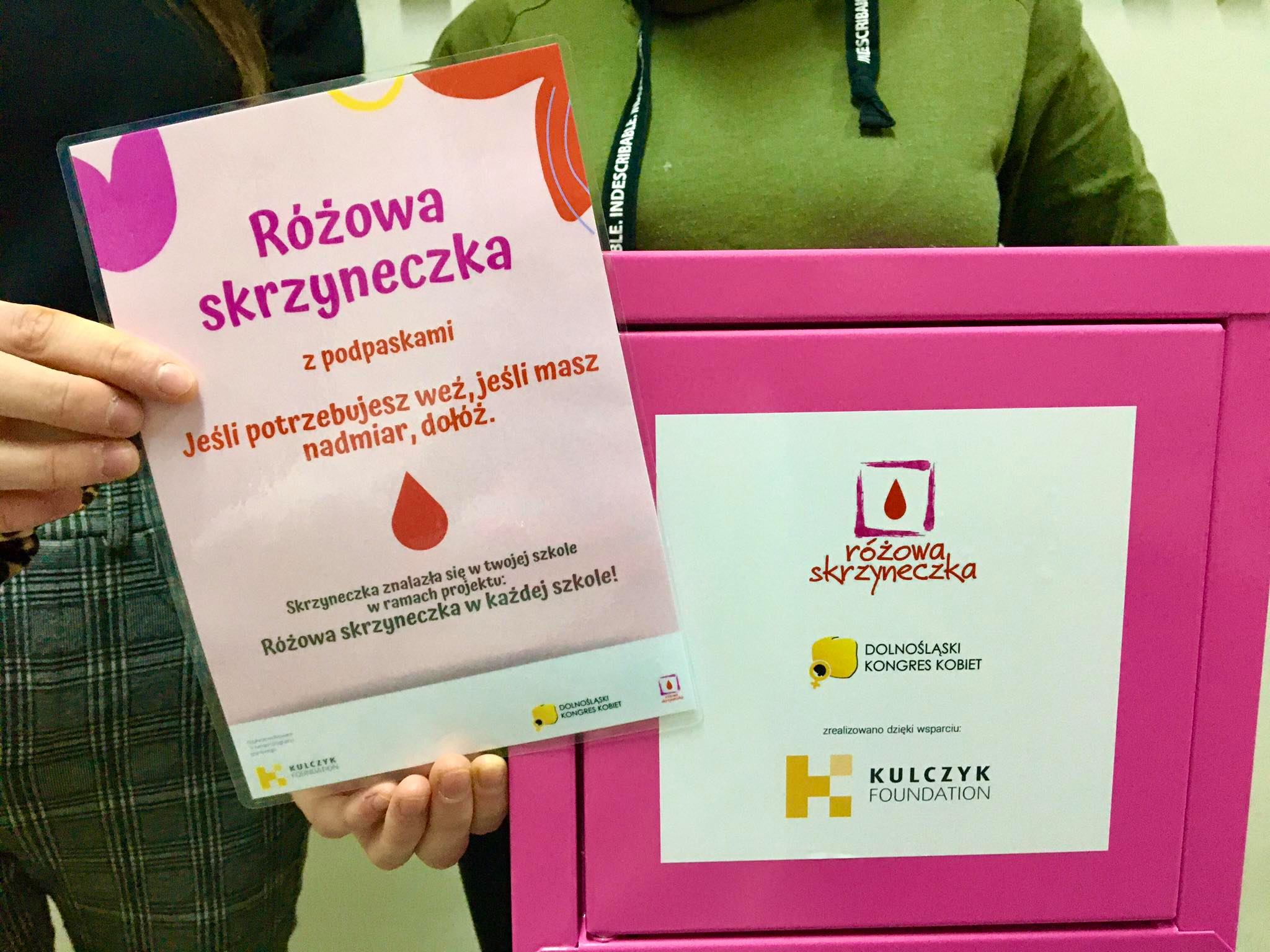 Inicjatywa „Różowa skrzyneczka w każdej szkole” jest realizowana przez Stowarzyszenie Dolnośląski Kongres Kobiet, w ramach grantu przyznanego przez Kulczyk Foundation.