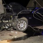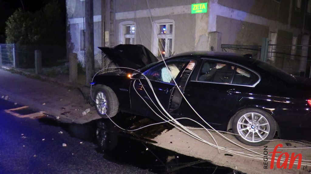Rozpędzone bmw ścięło jeden słup energetyczny i rozbiło się, uderzając w kolejny. Kierowca samochodu na lubińskich tablicach rejestracyjnych miał wyjątkowo dużo szczęścia.