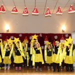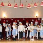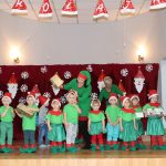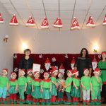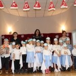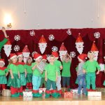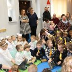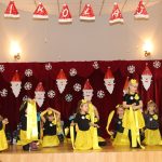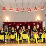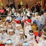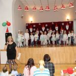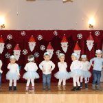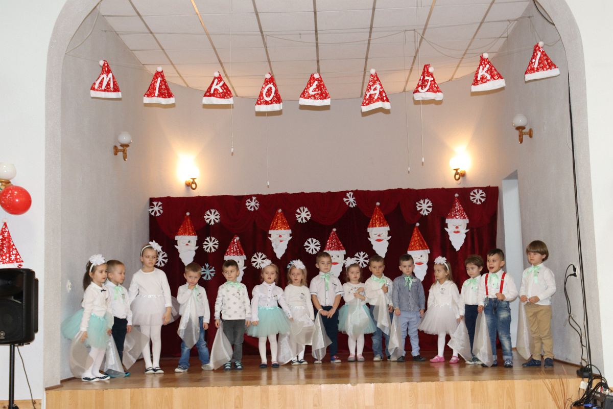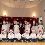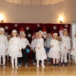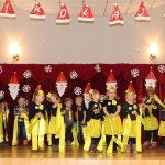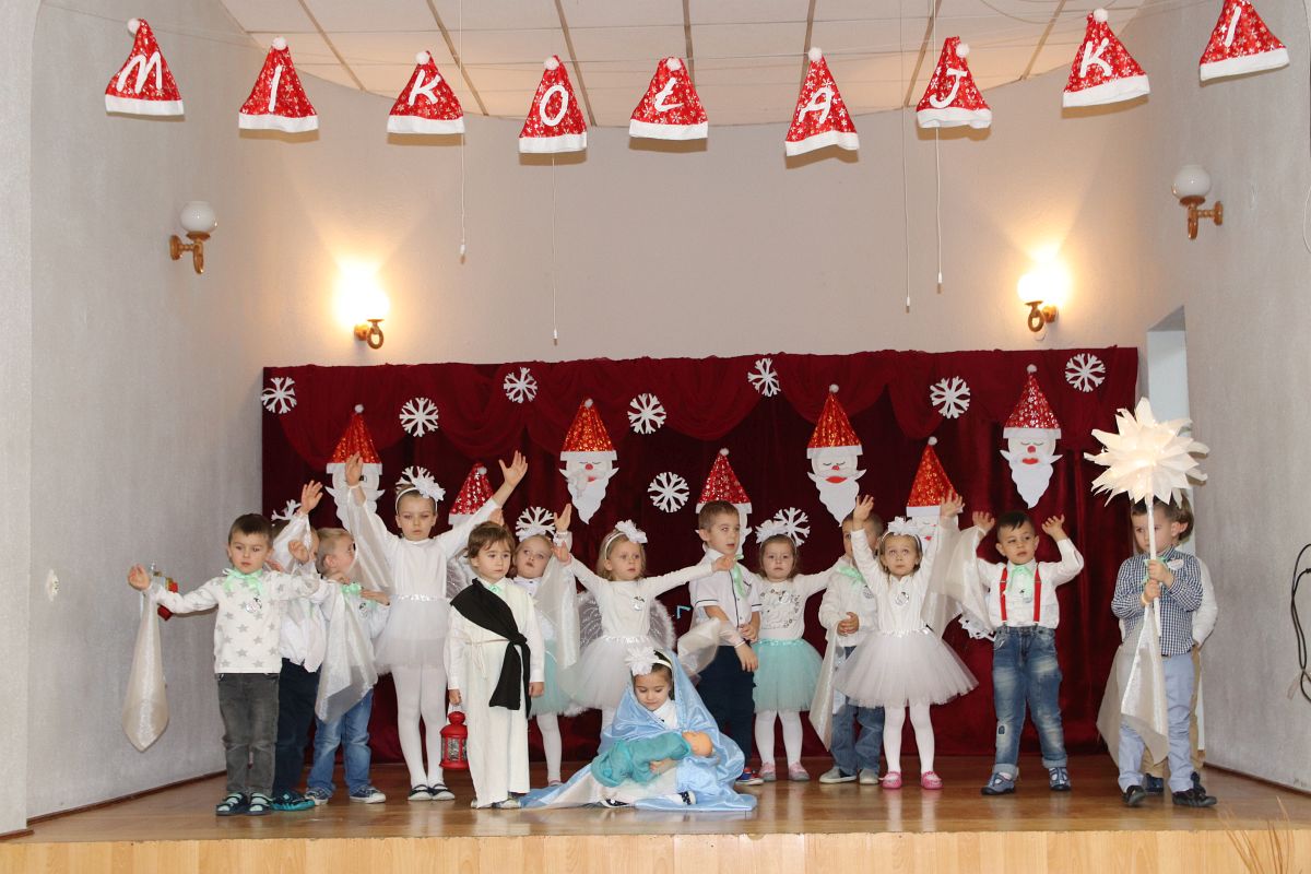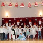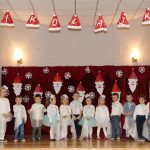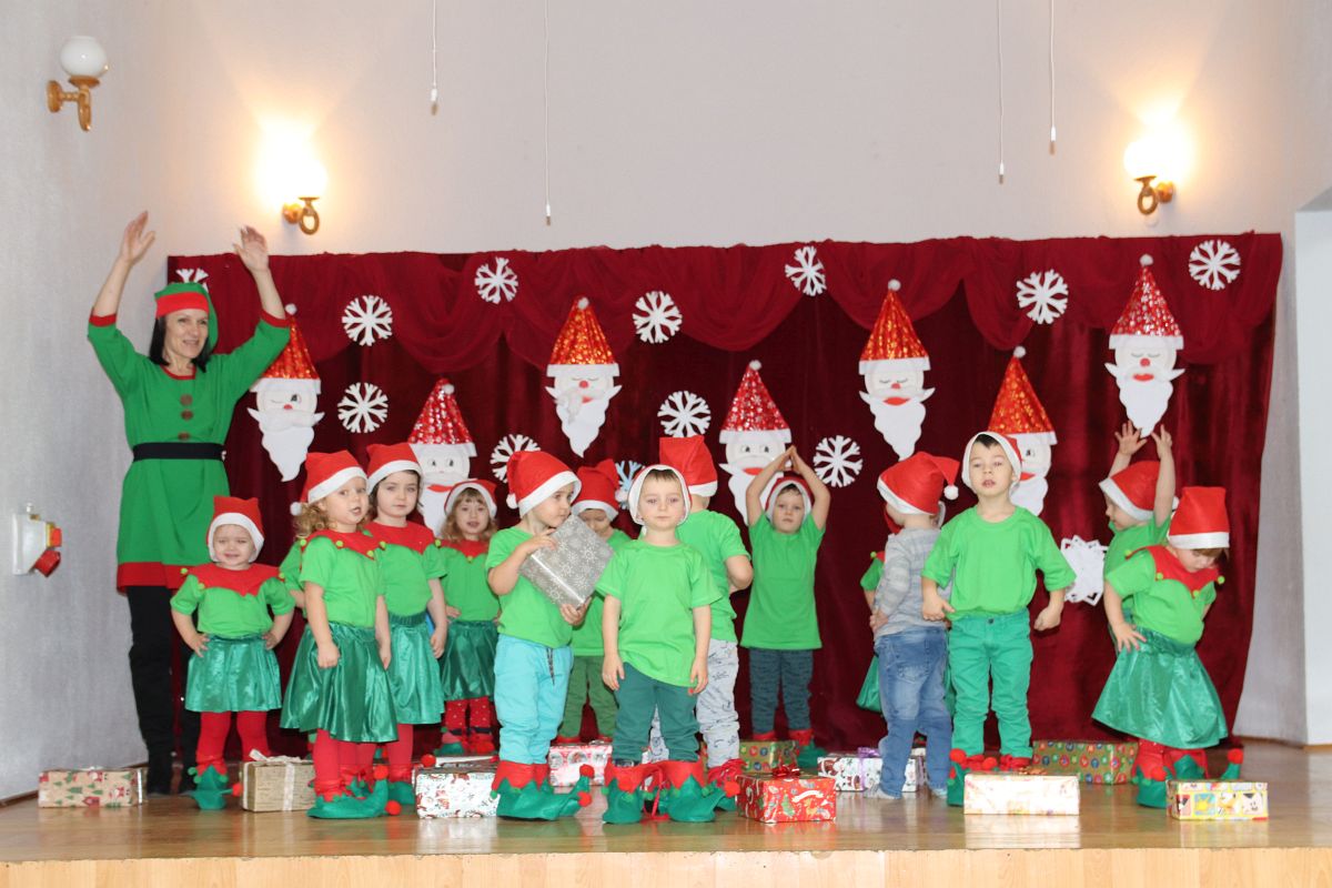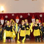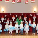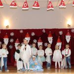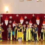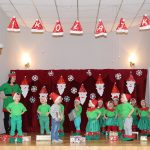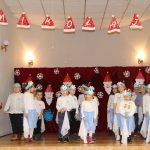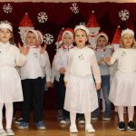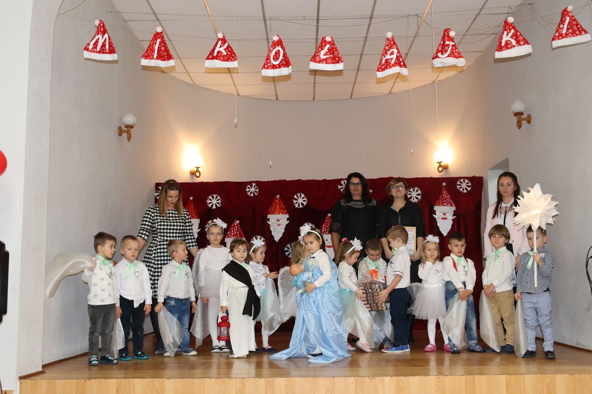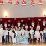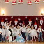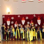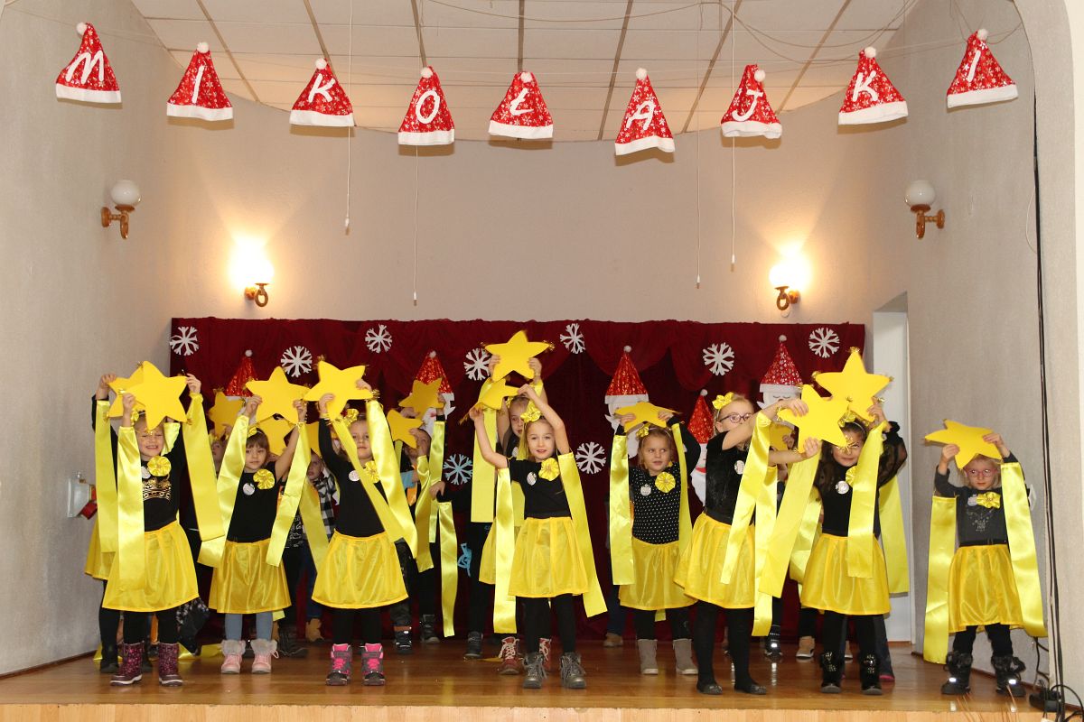 Jako pierwsza wystąpiła grupa „Misie” 2,5-, 3-latków pod kierunkiem Katarzyny Sochy i Agaty Dykta. Dzieci zaprezentowały się nam w montażu śpiewno-muzycznym: „Zimowa piosenka” i „Taniec śnieżynek”. Druga w kolejności wystąpiła grupa „Żabki” 3-latki pod kierunkiem Justyny Wawrzyniak i Agaty Dykta w piosenkach zatytułowanych „Elfy” i „Muzyczne stop”. Grupa „Sówki” były to 4-latki pod kierunkiem Agaty Musielskiej i Magdaleny Czachara. „Sówki” zaprezentowały się w utworach: „ Taniec białych dni” i „Jezus się narodził”. Natomiast Małgorzata Mały i Magdalena Czachara wraz z grupą „Słoneczka” 5-latków zaprezentowała się w tańcu i piosence pod wspólną nazwą „Dzień Bożego Narodzenia”. Grupa „Kotki”, pod kierunkiem Weroniki Iwanickiej i Eweliny Lajter zaśpiewała – piosenki „Święta”, „Hallelujah”oraz „Przyszła zima”. Natomiast grupa „Motylki” pod kierunkiem Moniki Leciejewskiej i Weroniki Iwanickiej zaprezentowała się w piosence i tańcu: „Płatki śniegu” i „Zimowa pałeczka”.