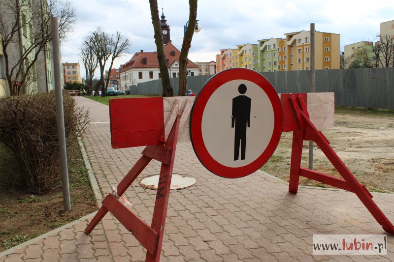 To już się dzieje! Miasto rozpoczyna przebudowę lubińskiego Rynku. Dziś robotnicy ogrodzili część terenu, a dokładnie odgrodzili część chodnika od strony parku. W tym miejscu budowany będzie staromiejski trakt.
