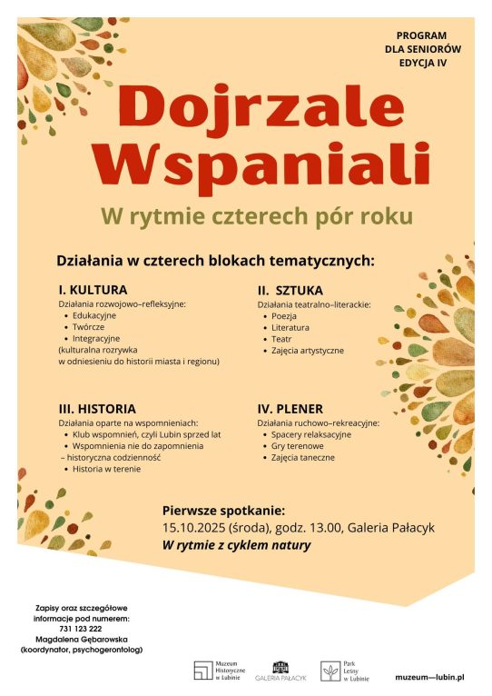 „Dojrzale Wspaniali” wkraczają już w czwarty sezon, a tegoroczne spotkania odbywają się pod hasłem „W rytmie czterech pór roku”. Jak podkreśla koordynatorka projektu, Magdalena Gębarowska, ten cykl to połączenie kultury, sztuki, historii i pleneru, realizowane w zgodzie z naturalnym rytmem życia.