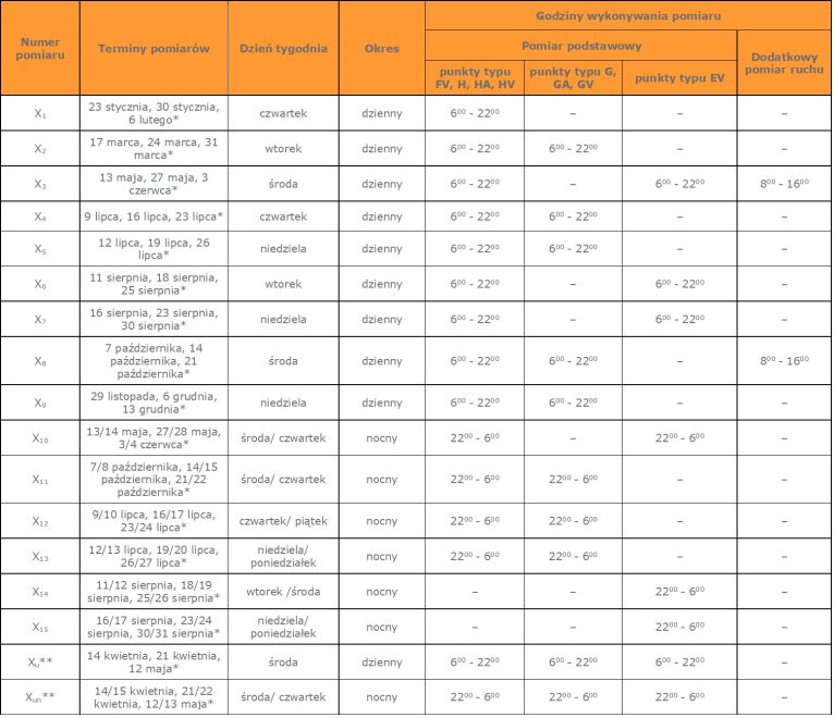 *Oznaczono terminy rezerwowe, dla których stawka za wykonanie pomiaru będzie stanowić 50% stawki podstawowej.
