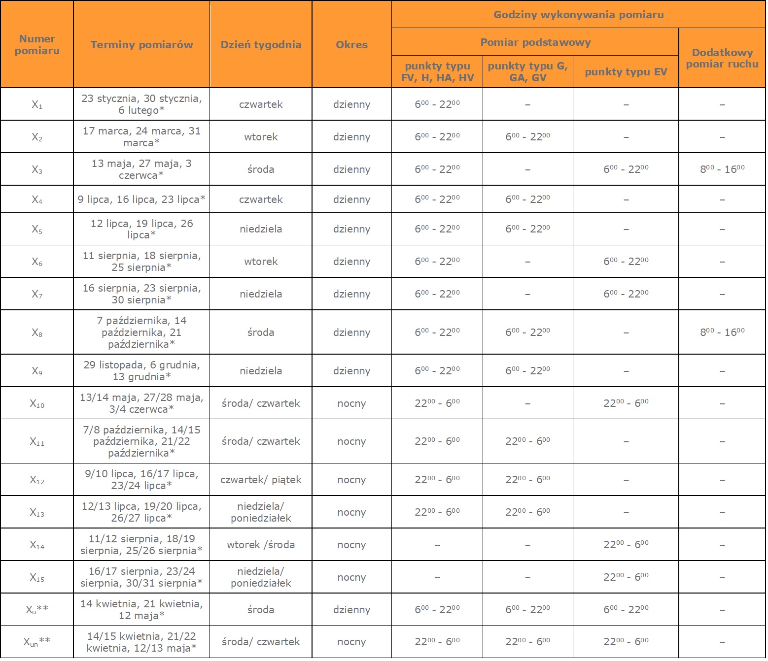 Poniżej kalendarz przeprowadzenia Generalnego Pomiaru Ruchu 2020 na drogach krajowych: