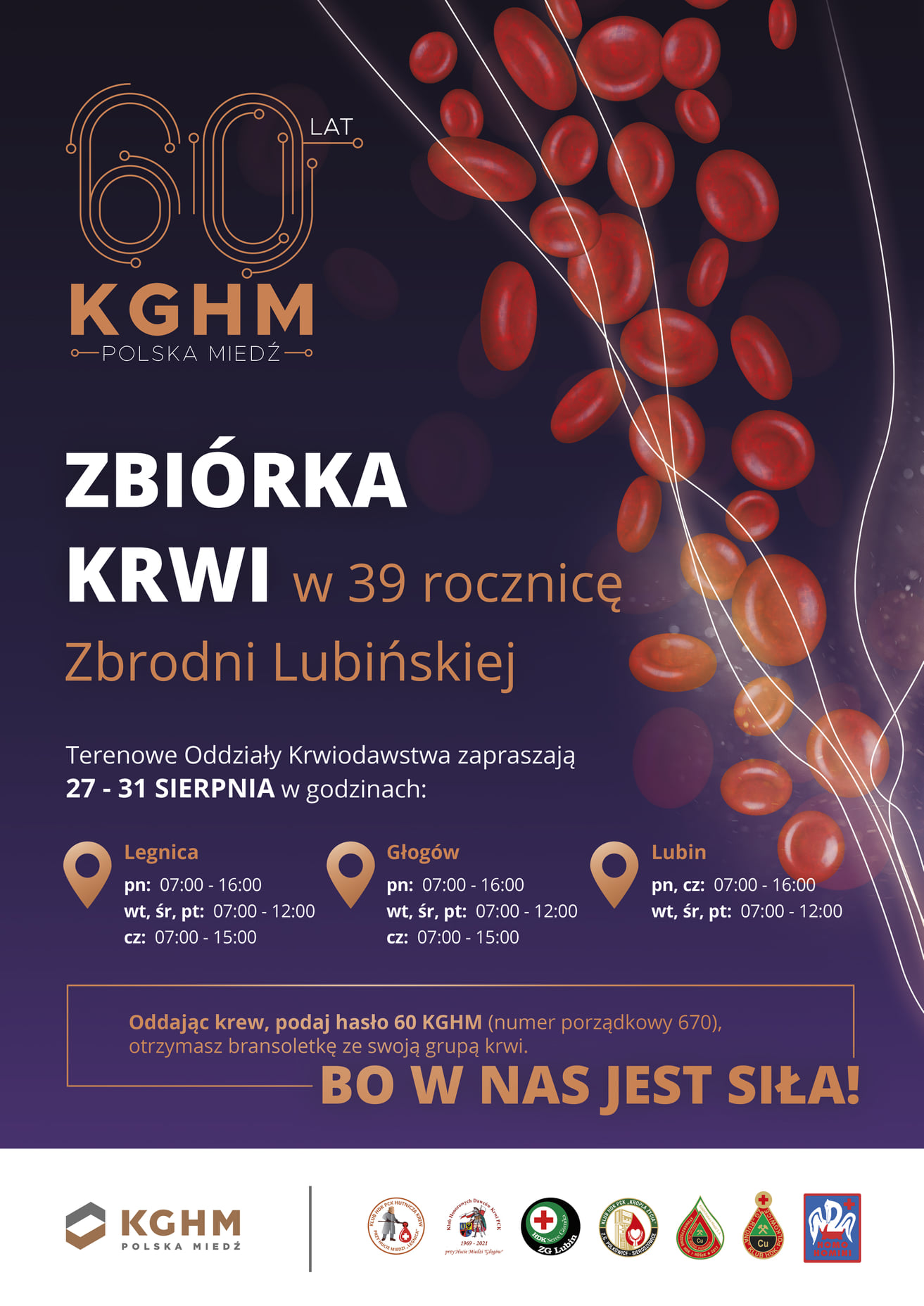 Dni Honorowego Krwiodawstwa w całym regionie stratują dziś, 22 listopada i potrwają do piątku, 27 listopada. W Lubinie do ich promowania przyłączył się też klub HDK PCK im. Miedzianej Kropli Krwi przy oddziale ZG Rudna. – Zachęcamy lubinian i nie tylko, by odwiedzili naszą placówkę i podzielili się tym życiodajnym płynem – zachęca kierownik Jarmolińska.