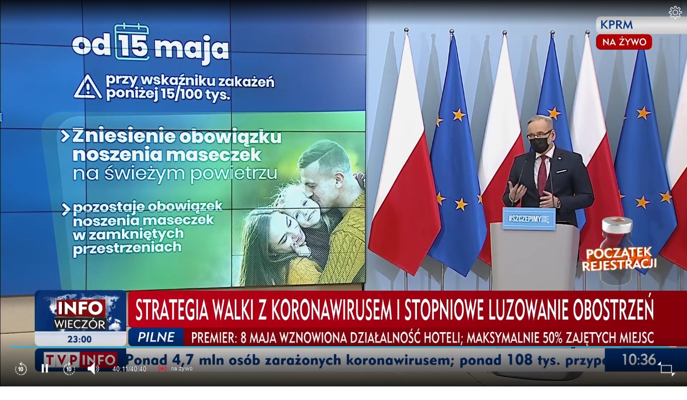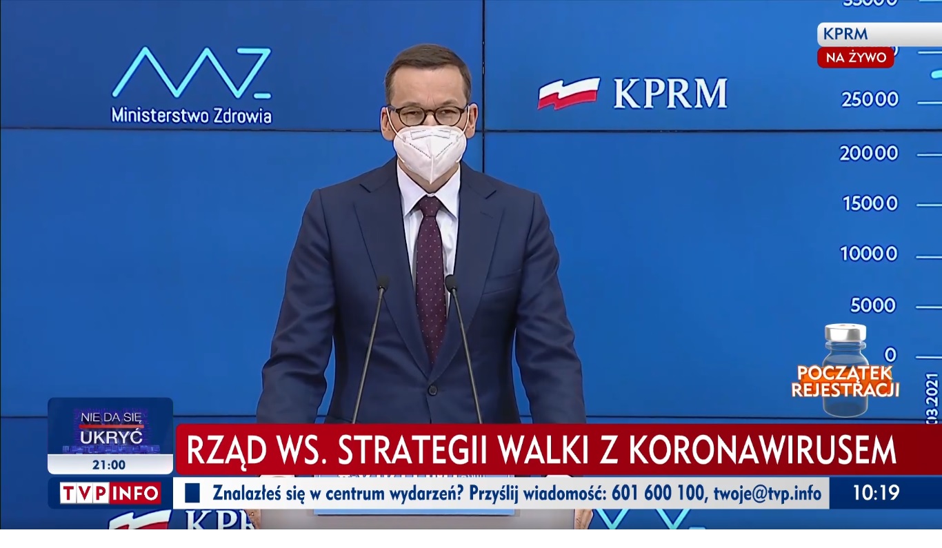 Jednocześnie premier zastrzega, że koronawirus to wciąż groźna choroba, a jedynym sposobem, by ją pokonać są masowe szczepienia. – Ostatnie dni pokazały, że idziemy w lepszym kierunku, że ta trzecia fala się przełamała, jednak do tego odmrażania musimy odejść z pokorą. Dlatego przedstawimy dziś harmonogram, uzależniony od dynamiki zakażeń – informuje premier Morawiecki.