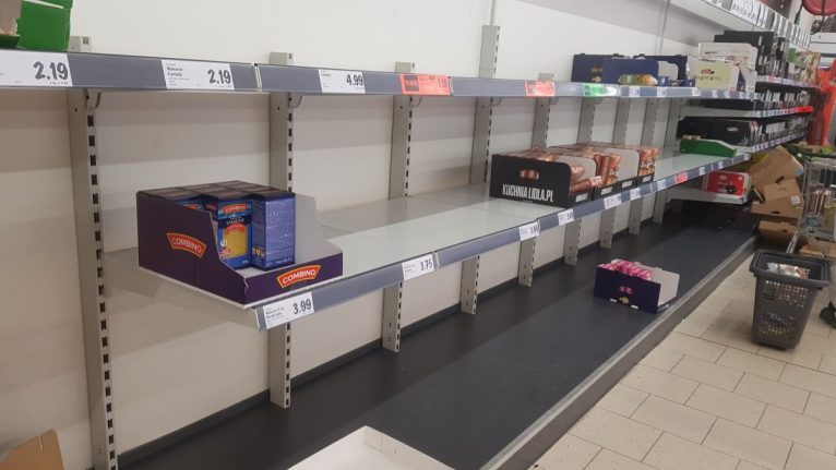 W wielu sklepach półki są puste. Najbardziej chodliwy towar to papier toaletowy i woda. Zaczęło się już wczoraj, po ogłoszeniu przez rząd zamknięcia na dwa tygodnie przedszkoli, szkół, uczelni, a także kin, muzeów i innych instytucji kultury. Po południu Polacy ruszyli na zakupy, szybko ogałacając sklepy.