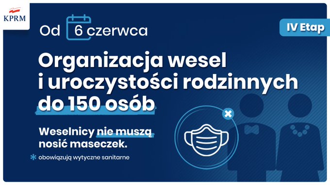 Jednocześnie od soboty przestają obowiązywać ograniczenia w handlu i gastronomii. Limity dotyczące liczby osób w sklepach w zależności od ich powierzchni zostają zniesione. Od niedzieli zostają zniesione także limity w kościołach. Premier zezwolił także na zgromadzenia do 150 osób. Można zatem już także organizować wesela z taką liczbą gości oraz koncerty plenerowe.