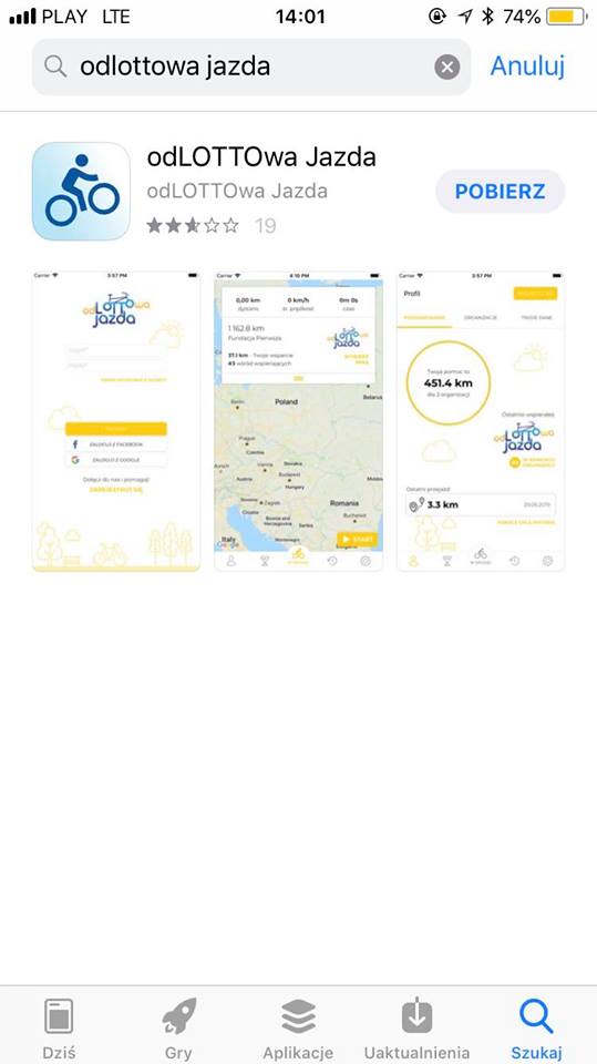 1. Pobieramy darmową aplikację „odLottowa jazda” na telefon. Działa ona na iOS oraz Androidzie.