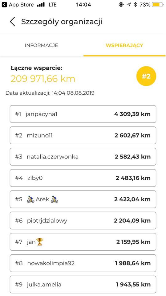 Zabawa trwa do 30 września. Coraz więcej lubinian bierze w niej udział. Po skończonych treningach wrzucają do sieci zdjęcia z trasy. Dodatkowo, możemy ze sobą rywalizować, bo nasze przejechane kilometry pojawiają się w rankingu.