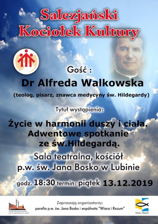 To będzie 75. już spotkanie w ramach cyklu Salezjański Kociołek Kultury. Już w najbliższy piątek, 13 grudnia, o godzinie 18.30 prelekcję „Życie w harmonii duszy i ciała.Adwentowe spotkanie ze św. Hildegardą” wygłosi dr Alfreda Walkowska.