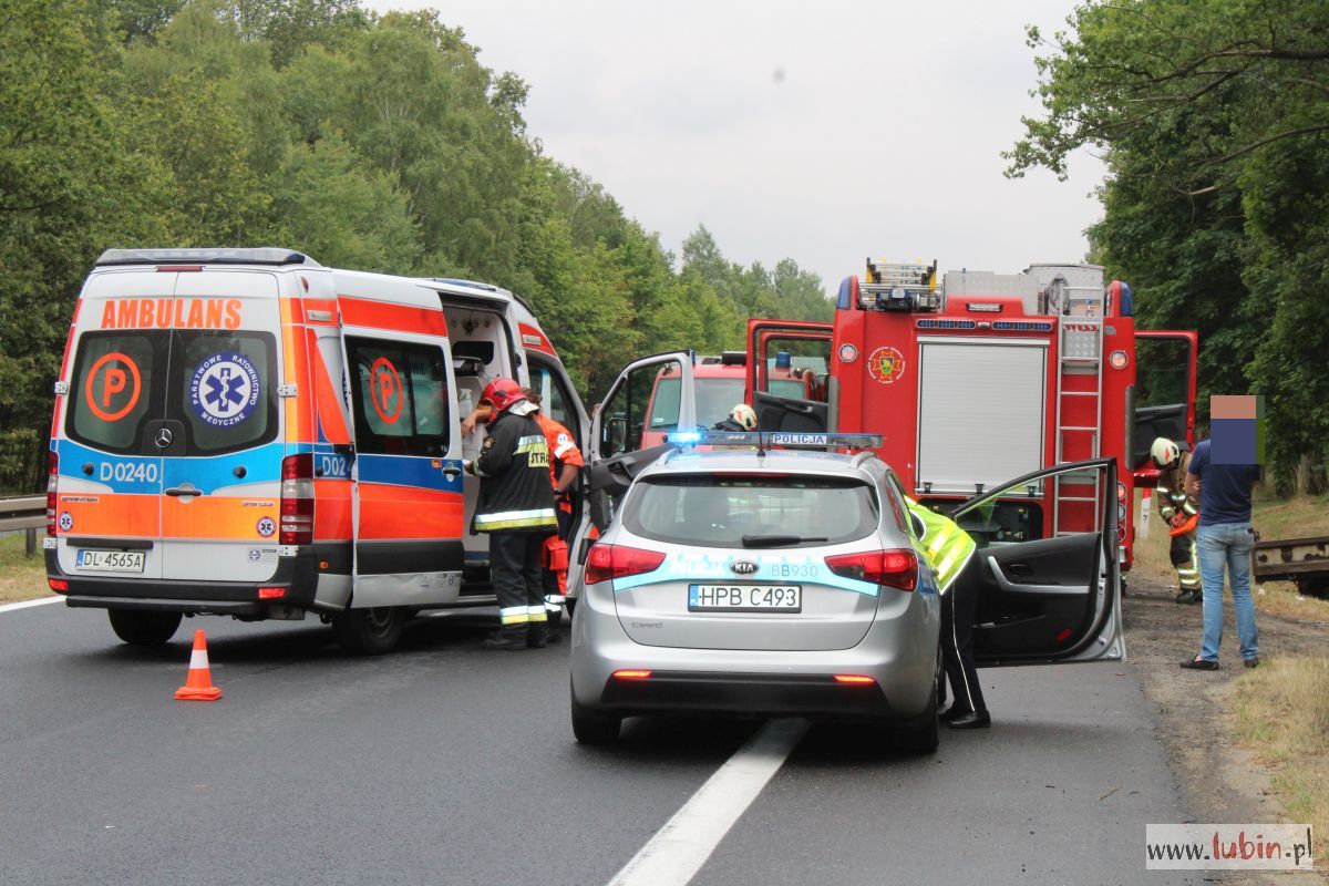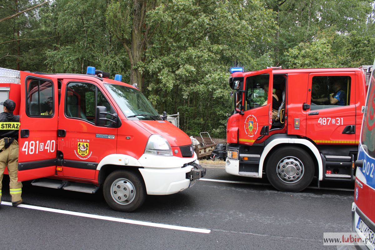 Kierowca półciężarówki marki Renault jadąc drogą S3 od strony Polkowic w kierunku Lubina z nieustalonych przyczyn zjechał z lewego na prawy pas, a następnie na pobocze i uderzył w przydrożne drzewo.