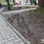 Auta rozjeździły namokniętą ziemię, błoto przenosząc na chodniki. – Szkoda tego podwórka, tego skrawka zieleni – dodaje mężczyzna, wskazując, że na podwórku wciąż pojawiają się nowe ślady po kołach samochodów.