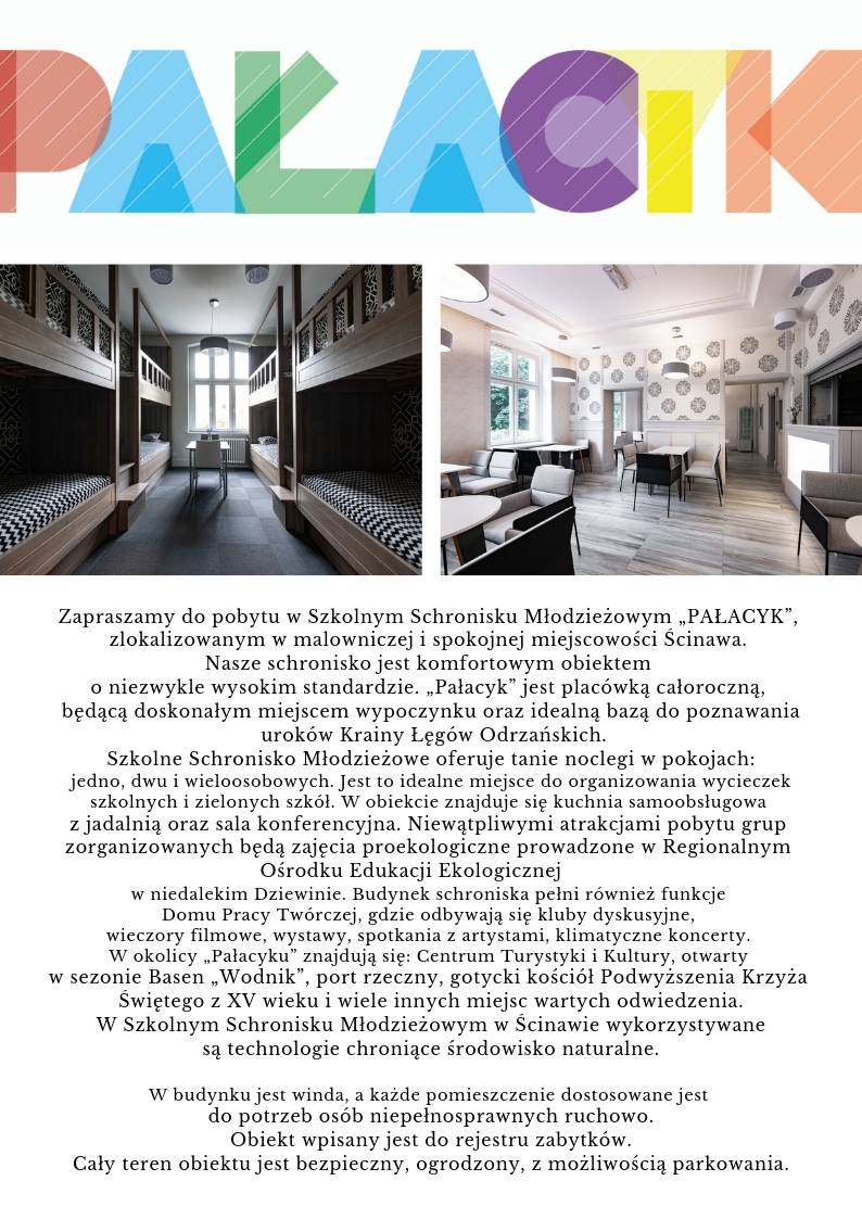 We wrześniu ubiegłego roku w Ścinawie otwarto szkolne schronisko młodzieżowe z prawdziwego zdarzenia. Mieści się ono w zabytkowym, gruntownie odnowionym budynku przy ul. Jana Pawła II, czyli tzw. Pałacyku.