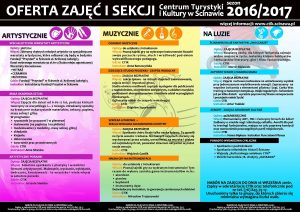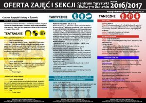 W sezonie 2016/2017 CTiK przygotowało propozycje podzielone na sześć sekcji. W ofercie centrum są zajęcia muzyczne, taneczne, teatralne, artystyczne, a także taktyczne i na luzie.