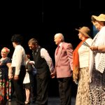 Seniorzy i uczniowie na scenie