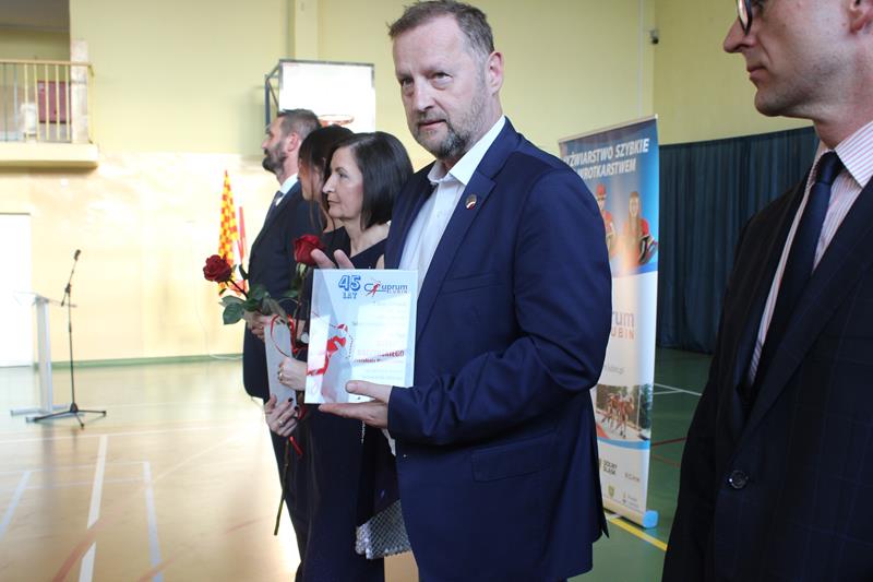 Uroczystość w Zespole Szkół Sportowych uświetnił swoją obecnością Rafał Tataruch, prezes Polskiego Związku Łyżwiarstwa Szybkiego. – Gdyby nie Cuprum to na pewno byłoby dużo, dużo mniej wyników na światowym poziomie. Cieszymy się, że przez tyle lat ta działalność prezesa, trenerów, zawodników, partnerów Cuprum, dobrze kooperuje, bo dzięki temu są sukcesy. Życzymy przez kolejne czterdzieści pięć lat, a nawet sto czterdzieści pięć lat takiej dobrej pracy – mówi Rafał Tataruch, prezes PZŁS.