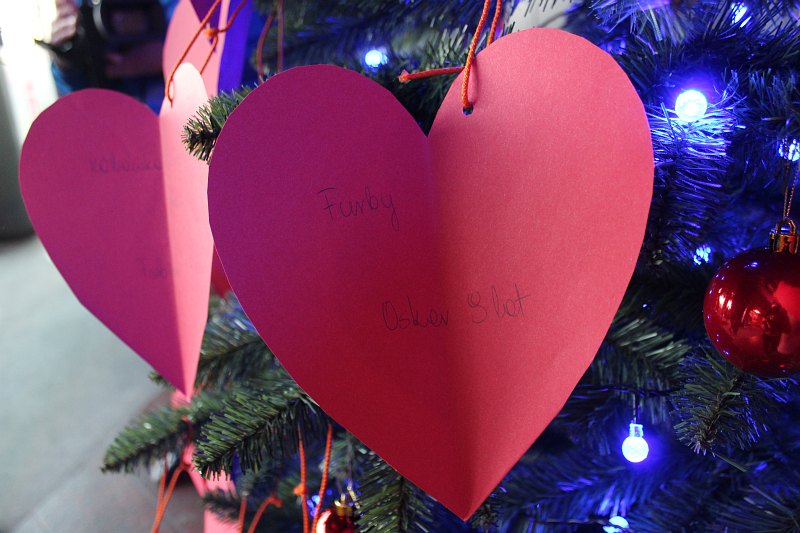 Prośby rzeczywiście nie są duże. Maluchy mają od kilku miesięcy do kilku lat i marzą między innymi o zabawkach: dziewczynki o lalkach, chłopcy o klockach Lego. Na serduszkach pojawiają się także prośby o buty do piłki nożnej. A w imieniu młodszych dzieci matki proszą o pieluchy czy też buty na zimę.