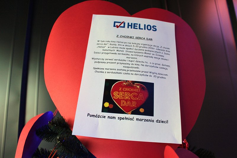 – Dla każdego, kto przygotuje paczkę i przyniesie ją do nas, przygotowaliśmy małą niespodziankę – dodaje dyrektor kina Helios. – Cieszymy się, że ta akcja spotyka się z takim pozytywnym odzewem. Wielu mieszkańców już od końca listopada dopytuje, kiedy będziemy mieli choinkę z serduszkami – mówi Hatała.
