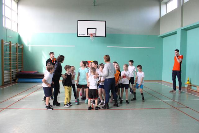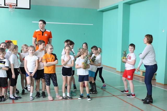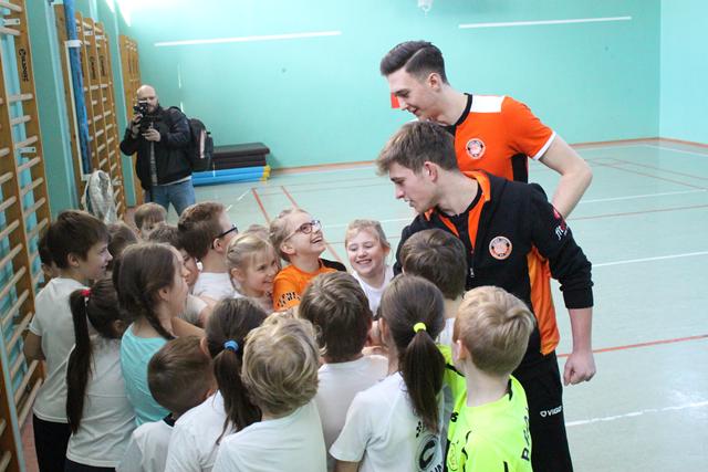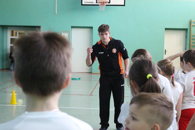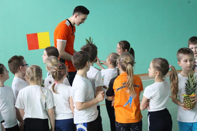 Młodzi ludzie mieli zajęcia ogólnorozwojowe, ale także sporo związanych z siatkówką. Zagrywka czy przyjęcie piłki. Na koniec zajęć uczniowie wręczyli gościom z Cuprum Lubin zdrowy poczęstunek w postaci owoców, natomiast przedstawicie klubu obdarowali młodych sportowców gadżetami związanymi z „Miedziową” drużyną.