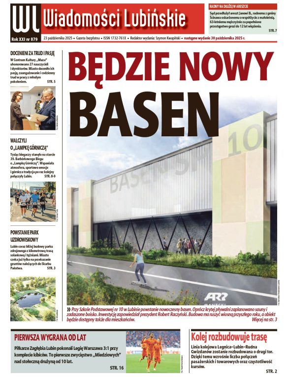 W najnowszym wydaniu najstarszego bezpłatnego lubińskiego tygodnika piszemy również m.in. o bulwersującej sprawie ścinawskiego radnego, aresztowanego za seks z nieletnią, 39. edycji Barbórkowego Biegu o „Lampkę Górniczą” czy też o wyróżnieniach dla lubińskich nauczycieli z okazji ich święta.