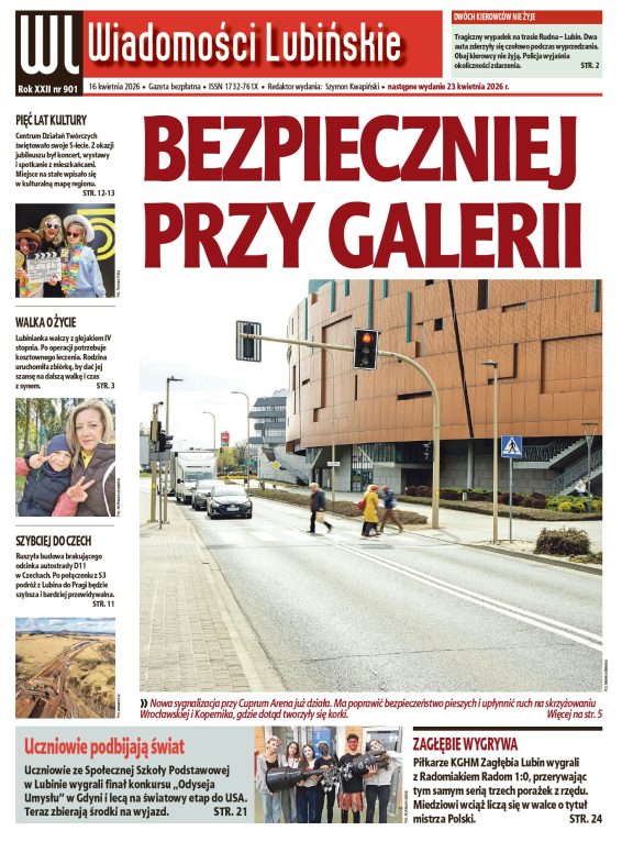 W 901. numerze najstarszego bezpłatnego lubińskiego tygodnika piszemy również m.in. o międzynarodowym sukcesie uczniów jednej z lubińskich podstawówek, o tragicznych w skutkach wypadkach drogowych, o możliwym strajku w PeBeCe czy też o jubileuszu Centrum Działań Twórczych w Lubinie.