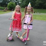 Mała, niespełna czteroletnia Wiktoria miała dzisiaj pierwszy raz rolki na nogach. Dla zachęty – rolki, kask i ochraniacze są w różowe potwory. Ale zachęcać szczególnie nie trzeba – Wiktoria, chociaż teraz się boi, w przyszłości chce jeździć jak jej starsza siostra Ola.