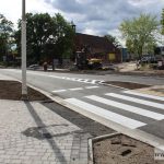Robotnicy kończą też właśnie budowę chodników, a na jezdni malowane jest oznakowanie.