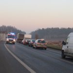 Na miejscu pracują funkcjonariusze policji i straży pożarnej. Ruch w tym miejscu odbywa się wahadłowo, tworzą się kilometrowe korki. Kierujący skodą został przetransportowany do szpitala.