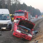 Do czołowego zderzenia busa ze skodą octavią doszło na krajowej trójce. Wypadek miał miejsce w Chróstniku przed sygnalizacją świetlną. Ruch w tym miejscu odbywa się wahadłowo.