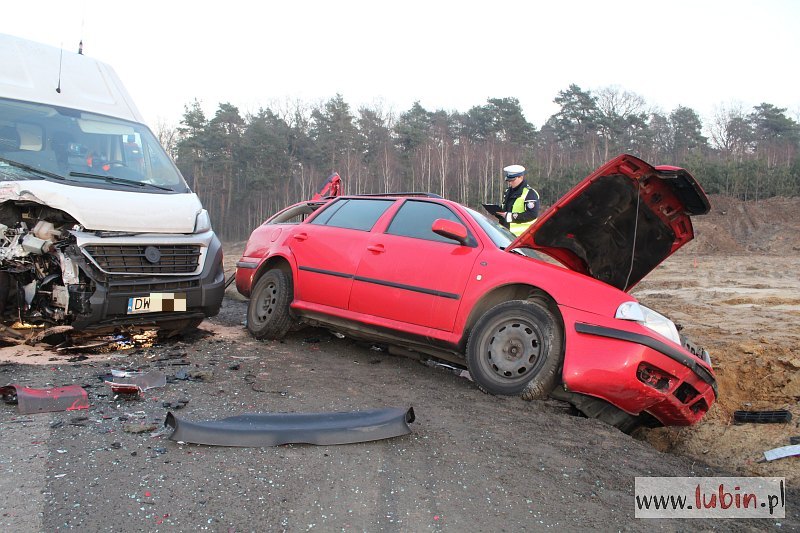 – Kierujący skodą jechał w kierunku Legnicy. Przed Chróstnikiem wyprzedzał samochód ciężarowy, wpadł w poślizg i uderzył w nadjeżdżającego z naprzeciwka busa – mówi asp. sztab. Jan Pociecha, oficer prasowy lubińskiej policji.