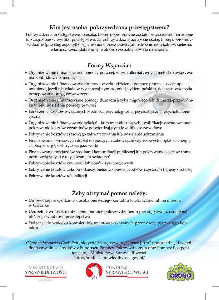 Projekt współfinansowany jest ze środków Funduszu Sprawiedliwości, którego dysponentem jest minister sprawiedliwości.