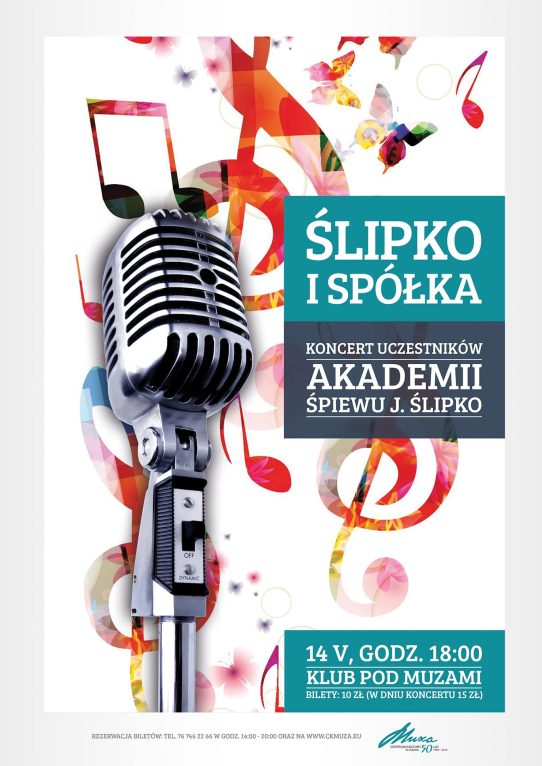Występ zatytułowany „Ślipko i spółka” odbędzie się 14 maja o godzinie 18 w Klubie pod Muzami. Bilety kosztują 10 zł. W dniu koncertu trzeba będzie za nie zapłacić 15 zł.