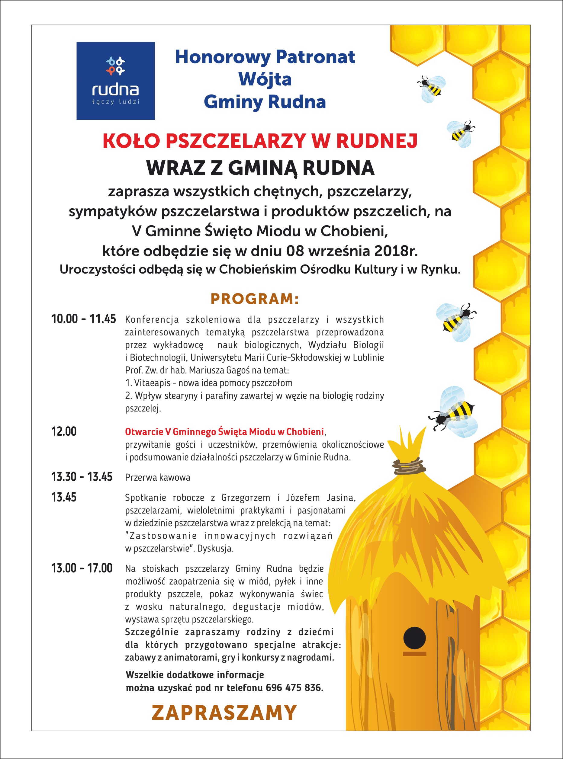 Miłośnicy miodu, pracowite pszczółki i wszyscy sympatycy pszczelarstwa mogą czuć się zaproszeni na Gminne Święto Miodu, które odbędzie się już w tę sobotę 8 września w Chobieni. Słodka impreza organizowana jest po raz piąty.