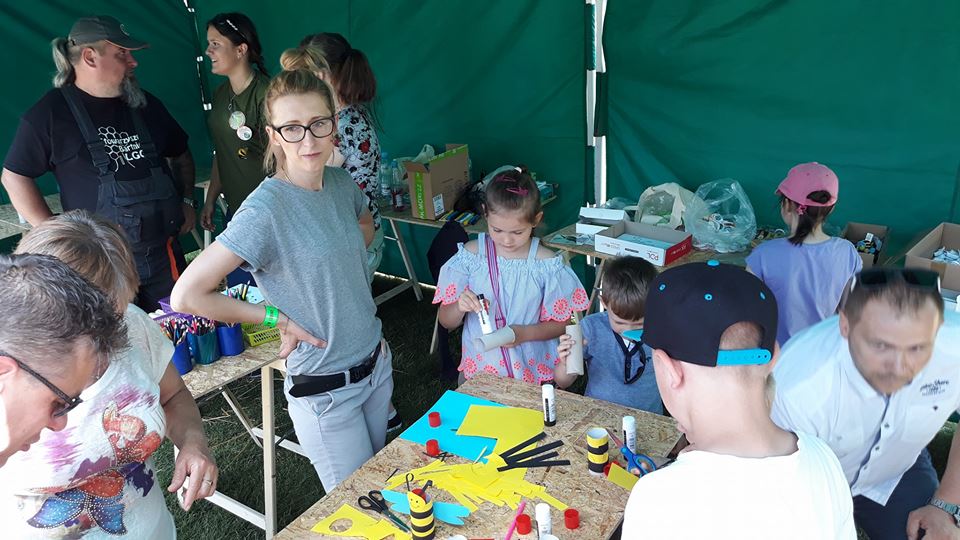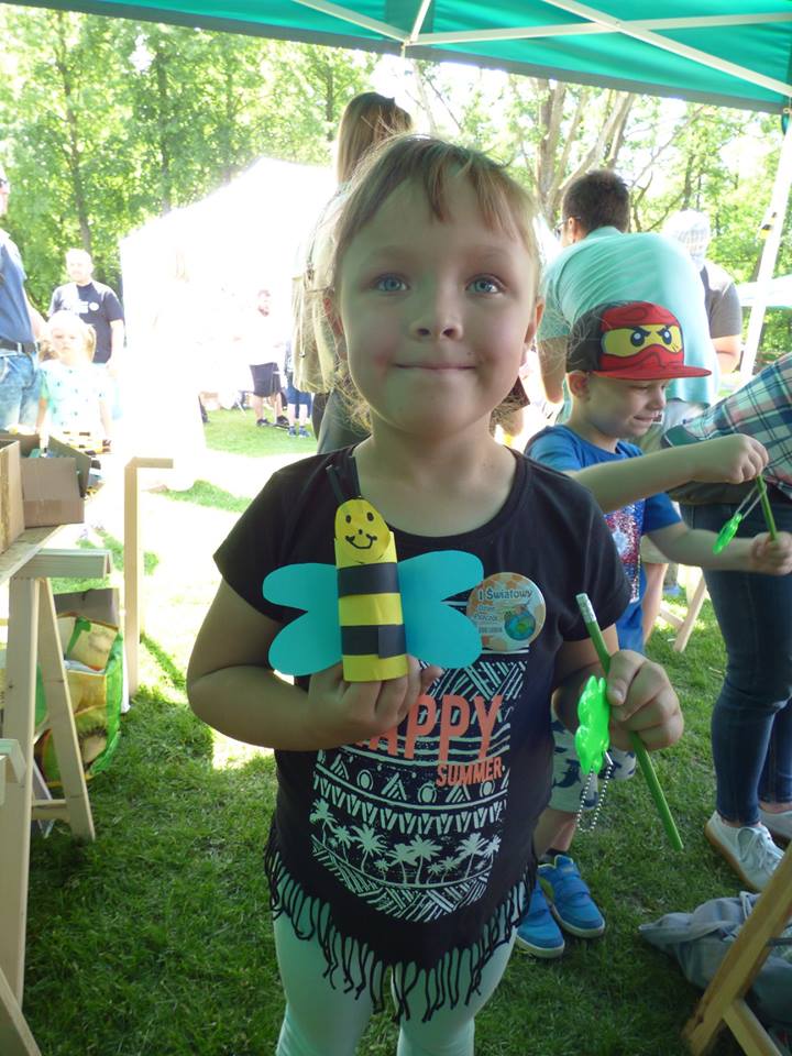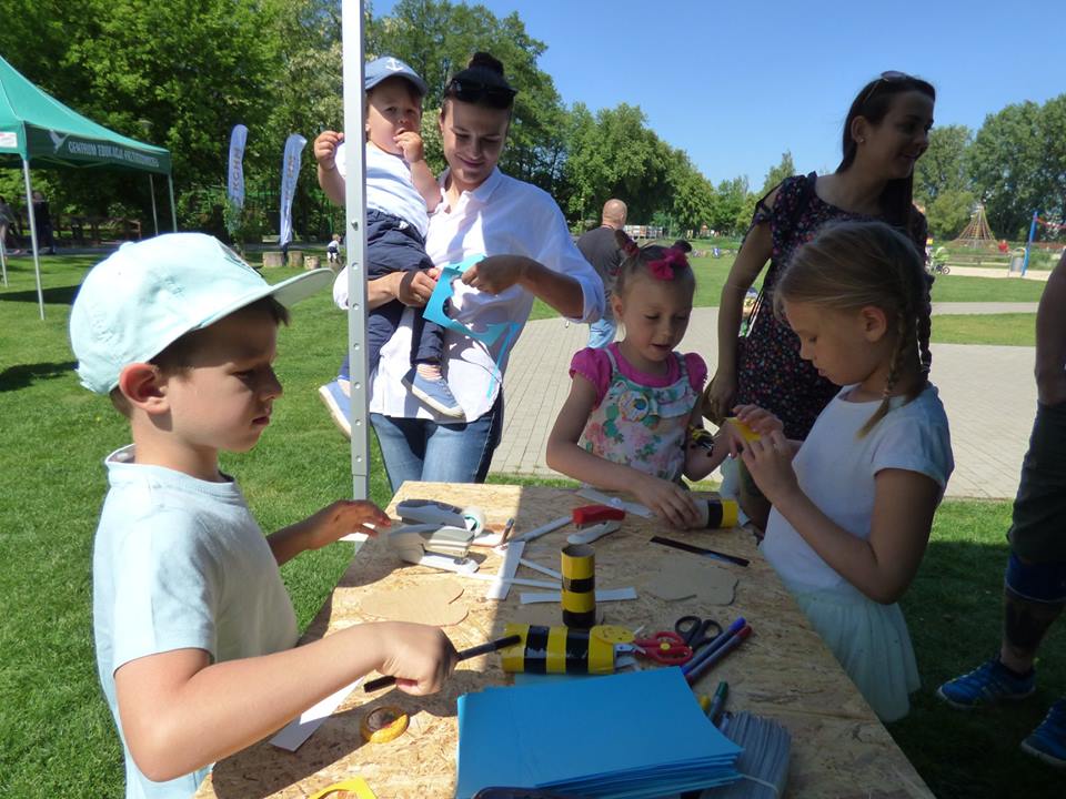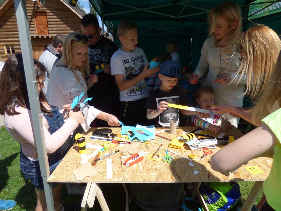 Pomyślano także o najmłodszych. Na warsztatach plastycznych dzieci wykonywały owady z rolek po papierze toaletowym. Można było założyć specjalne urządzenie, które pokazywało jak widzą pszczoły czy stworzyć świecę z węzy.