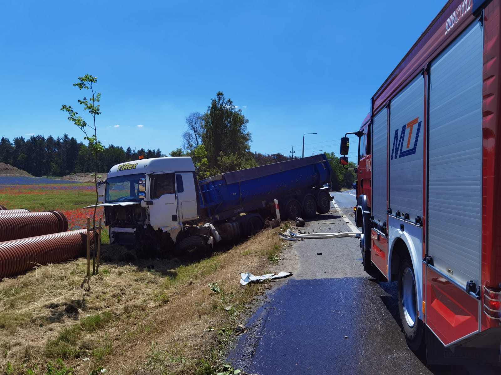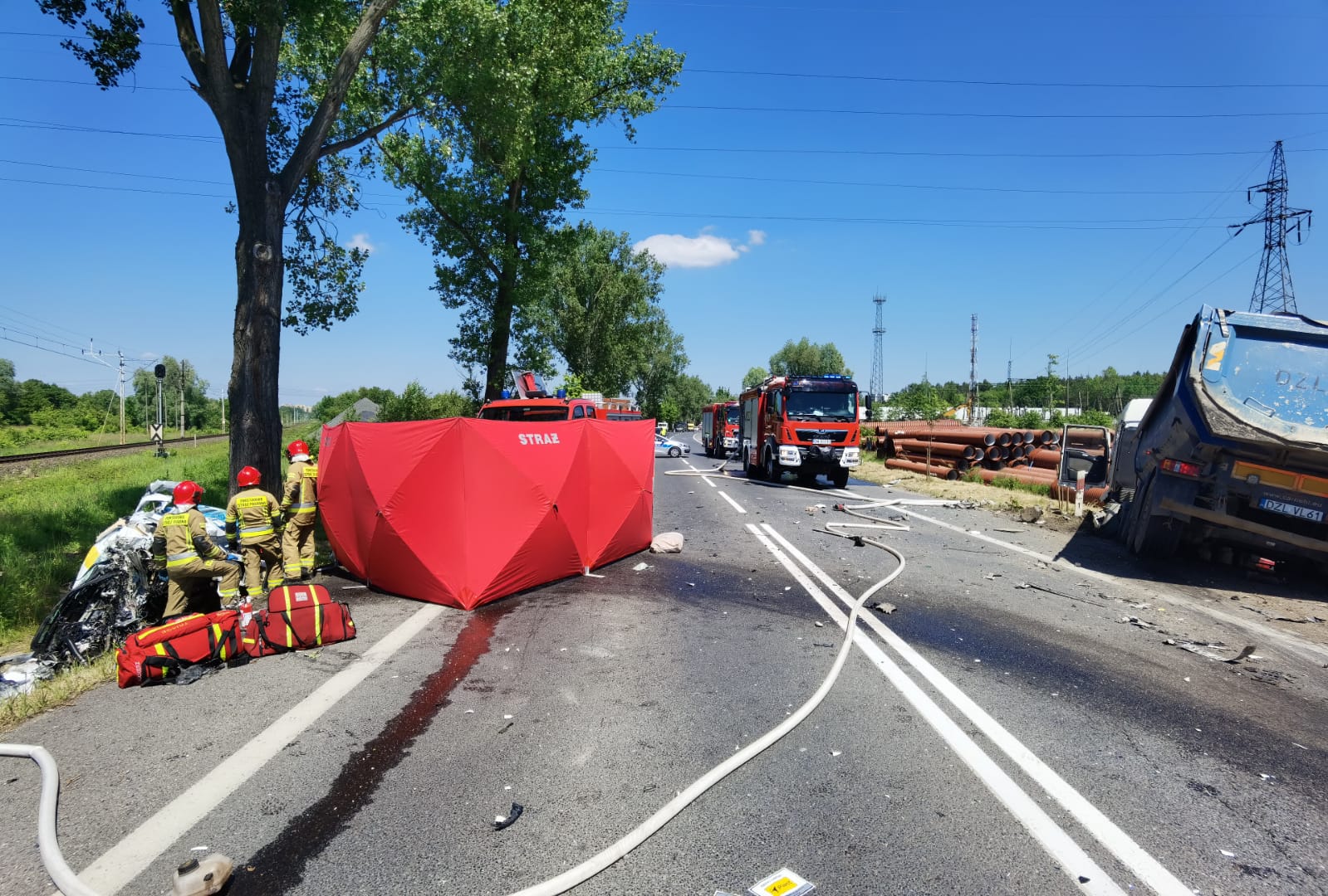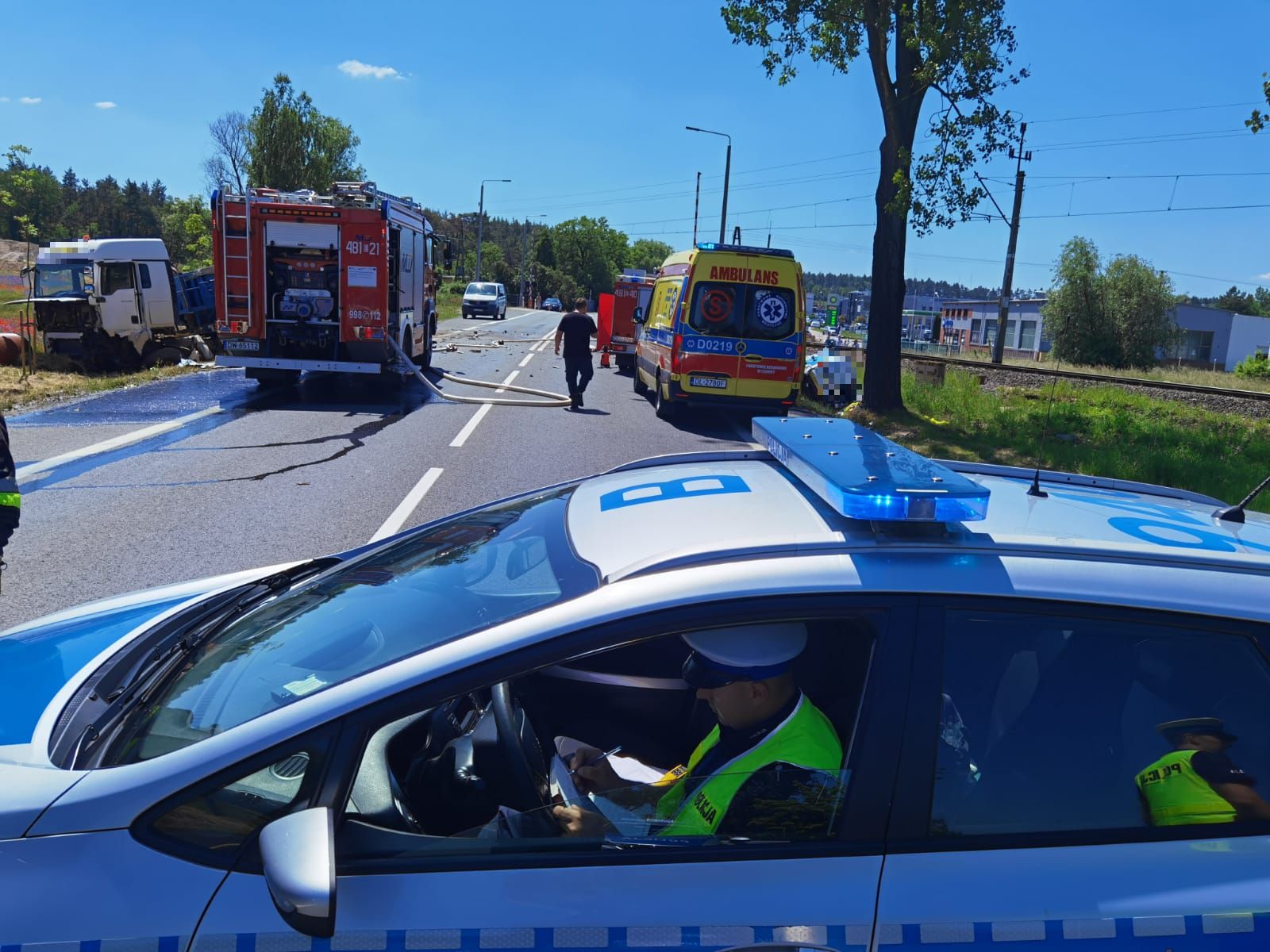 Droga jest całkowicie zablokowana, na miejscu pracują śledczy i prokuratura, którzy będą wyjaśniać, jak doszło do tego wypadku. Policja zaleca objazdy.