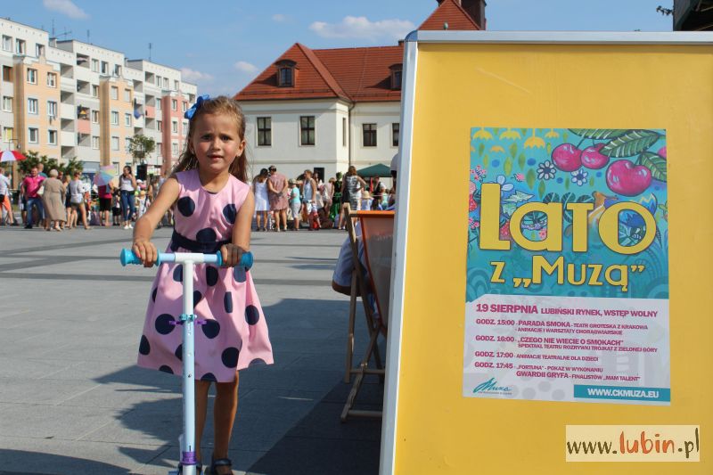 Niedzielne wydarzenie to druga odsłona zapoczątkowanego w tym roku cyklu „Lato z Muzą”. W lipcu Lubin odwiedził Teatr Klinika Lalek z Wolimierza z widowiskiem „Cyrk bez przemocy”. Tym razem można było obejrzeć spektakl „Czego nie wiecie o smokach” w wykonaniu Teatru Rozrywki Trójkąt z Zielonej Góry. W przedstawieniu nie brakowało bajkowych stworów, które zrobiły spore wrażenie na młodszej części publiczności. Jednak największym zainteresowaniem cieszył się smok, który unosił się nad głowami tych, którzy pojawili się w rynku. Maluchy próbowały go schwytać, ponieważ co jakiś czas stwór obniżał lot, niemal dotykając ziemi.