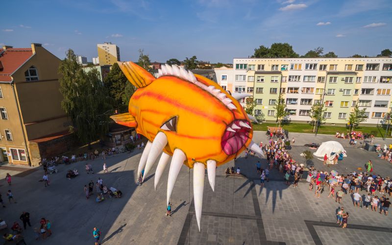 Smoki opanowały dziś lubiński rynek. Największe wrażenie na wszystkich zrobił wielki balon wypełniony helem. – To dinozaur! – krzyczały maluchy. – To smok! – wtórowały inne dzieci. – To wielka ryba – stwierdził zaś rzeczowo kilkuletni chłopiec. – Myślę, że ta formuła spotkań ze sztuką w rynku sprawdza się i bardzo się cieszymy, że jest tylu widzów i tak się wszyscy świetnie bawią – mówi z uśmiechem Małgorzata Życzkowska-Czesak, dyrektor Centrum Kultury Muza, które zorganizowało dzisiejszy dzień ze smokami i teatrami ulicznymi.