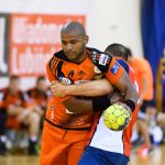 Wynik ze skrzydła otworzył Łukasz Kużdeba i przez kilka pierwszych minut to miedziowi byli na prowadzeniu. W 10. minucie na tablicy wyników było 4:5, a trzy minuty później 6:8. Lubinianie doprowadzili do remisu po 10 i do końca trwała wymiana ciosów, a lekka 1-bramkowa przewaga leżała po stronie gości, którzy do przerwy wygrywali 16:15.