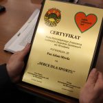 Starosta Adam Myrda oraz wiceprzewodnicząca rady powiatu Dominika Chomont-Parzyńska otrzymali certyfikat „Serce dla sportu”, za zaangażowanie i działalność na rzecz sportu. – Dziękuję, choć w ogóle się nie spodziewałem – przyznaje starosta Myrda.