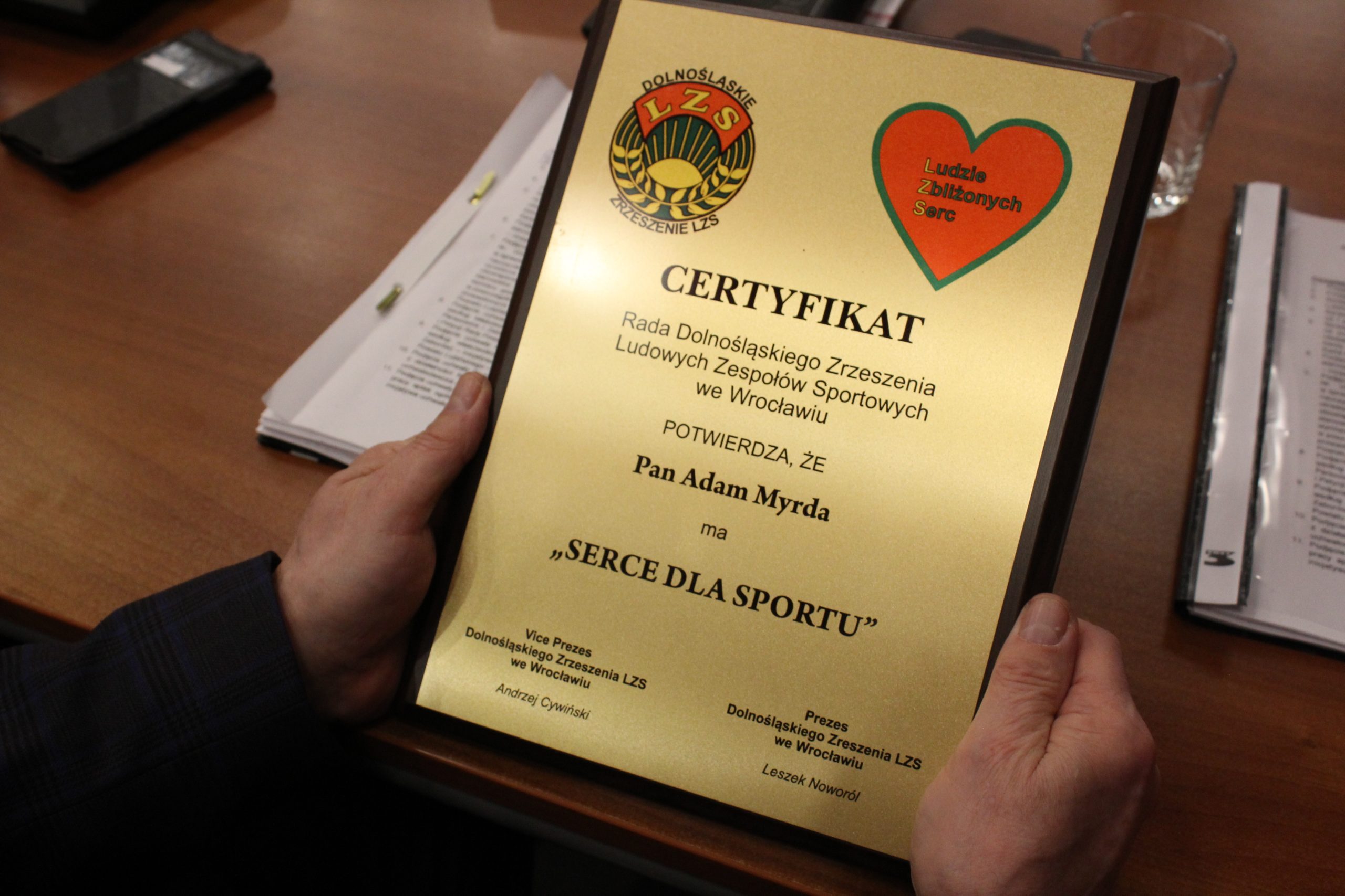 Wyróżnienia przywiózł na ostatnią sesję rady powiatu Krzysztof Lewicki, sekretarz Powiatowego Zrzeszenia LZS. Nagrody dla starosty i wiceprzewodniczącej zostały przyznane podczas ostatniego posiedzenia Dolnośląskiego Zrzeszenia LZS, które przyznaje certyfikaty.