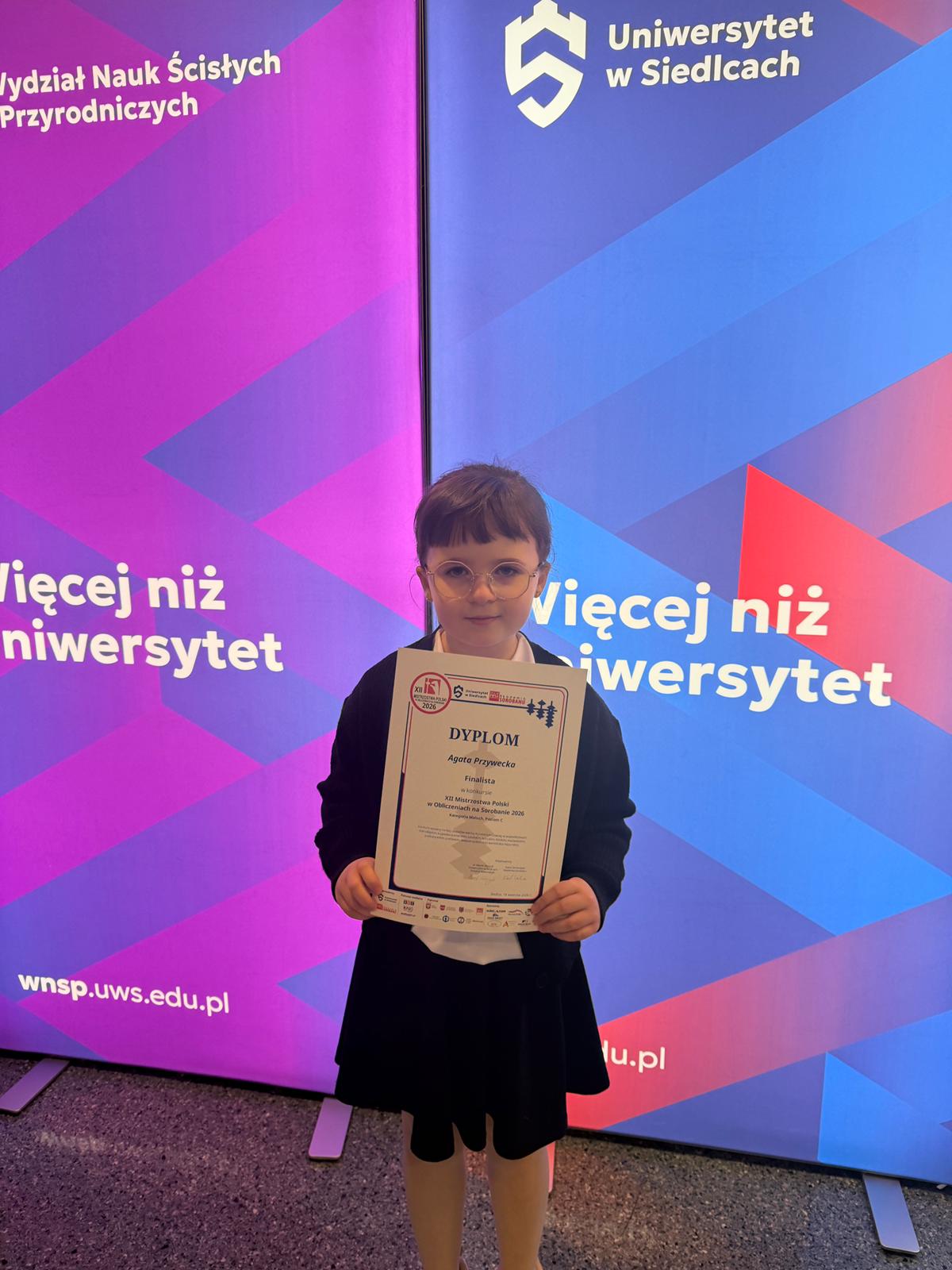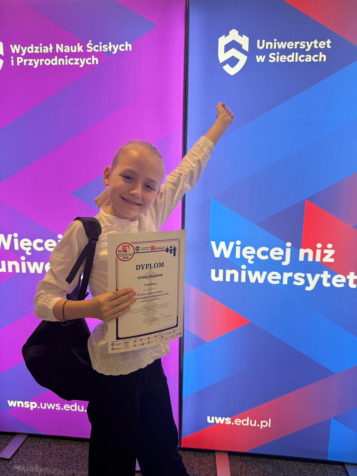 Alicja Dąbrowska zdobyła tytuł wicemistrzyni Polski w kategorii Maluch, Oliwia Mosiołek zajęła II miejsce w kategorii Ekspert w grupie C, Wojciech Fichtel wywalczył III miejsce w tej samej kategorii i grupie, Aleksandra Mosiołek zdobyła II miejsce w kategorii Ekspert w grupie B, dodatkowo Agata Przywecka zdobyła IV miejsce w kategorii Maluch, a Zofia Błażejowska IV miejsce w kategorii Ekspert Grupa A. Co czyni ten sukces jeszcze bardziej imponującym – wszyscy nasi uczniowie byli najmłodsi w swoich kategoriach.