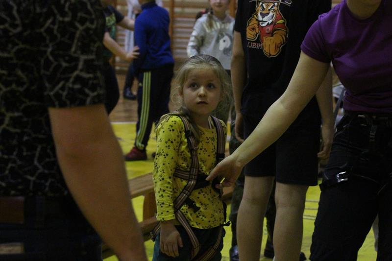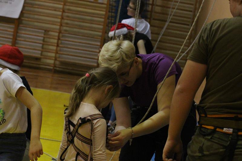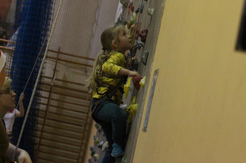 Największe zainteresowanie wśród dzieci wzbudziła ścianka wspinaczkowa. 10 metrowa wspinaczka po ścianie nie była straszna nawet dla najmłodszych uczestników zajęć.