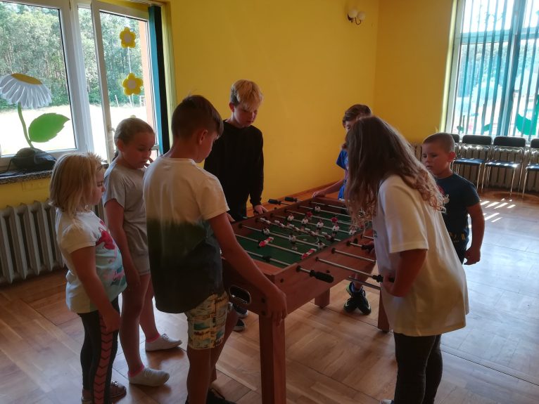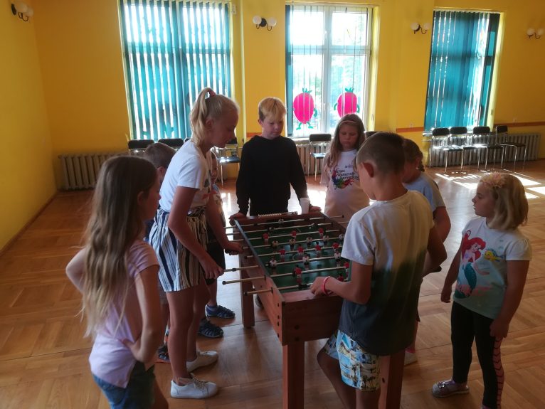 Okres wakacji to czas odpoczynku od szkoły ale nie od różnego rodzaju zabaw i turniejów. Młodsi i starsi rywalizowali ze sobą w grę piłkarzyki.