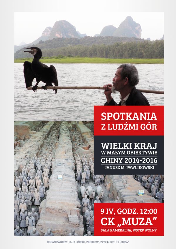 Tym razem lubinianie będą się mogli bliżej przyjrzeć Chinom. W najbliższą niedzielę, 9 kwietnia, podczas Spotkania z Ludźmi Gór o swojej podróży do Kraju Środka opowie Janusz M. Pawlikowski.