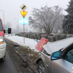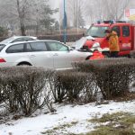 – Nie jechałem szybko, dopiero co ruszyłem spod świateł. Ale warunki są trudne, zarzuciło mnie w lewo, w prawo, a jak się skończyło, to widać – mówi kierujący BMW wskazując na przewrócony słup.